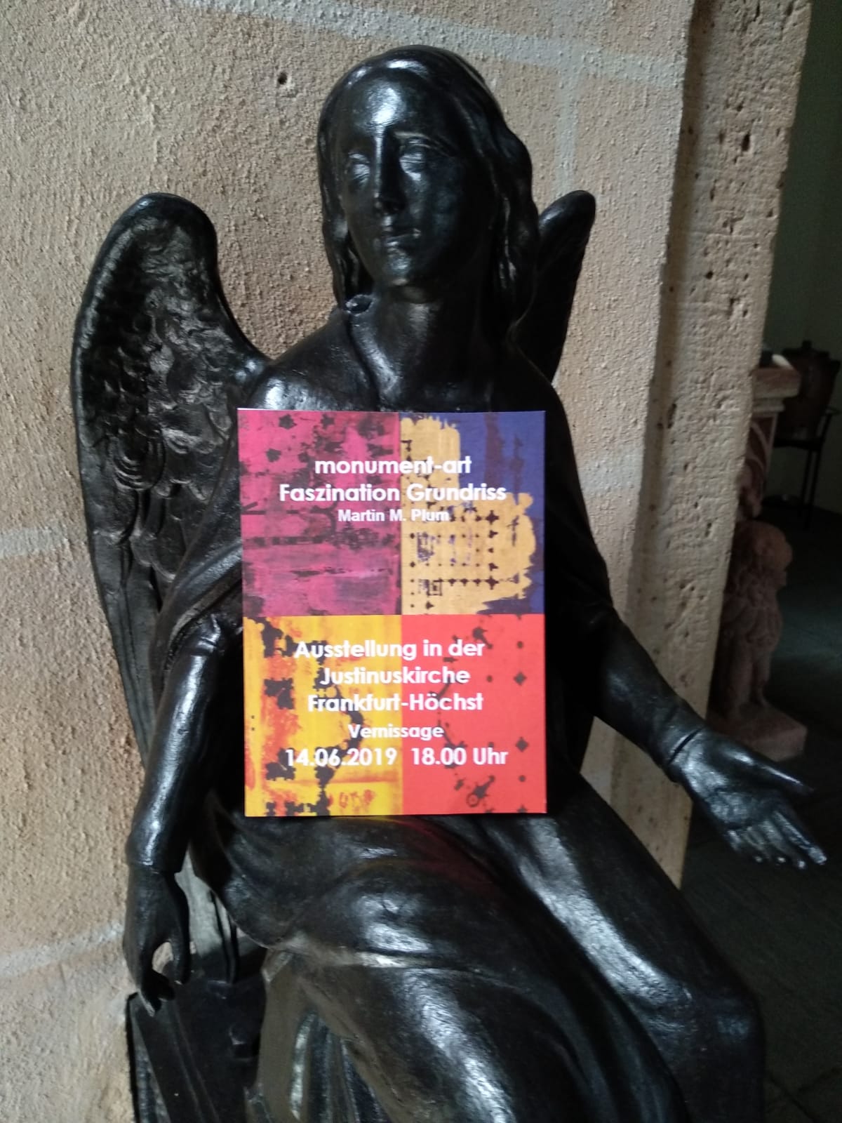 Zwischen Juni und August 2019 wurde eine Werkauswahl von Martin Plum in der Justinuskirche in Höchst am Main ausgestellt. Eröffent wurde die Ausstellung mit dem Titel "monument-art - Faszination Grundriss" am 14.06.19.